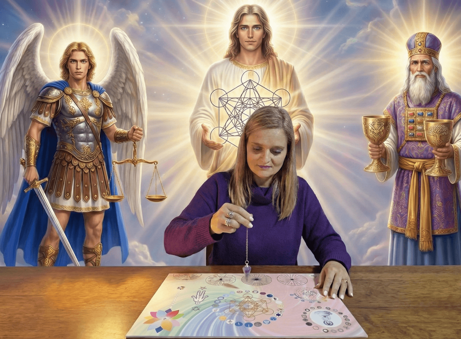 Uma formação para te limpares, te organizares energeticamente e te tornares Operadora de uma Mesa ancorada em Miguel, Metatron e Melquisedeque, com segurança e direção.