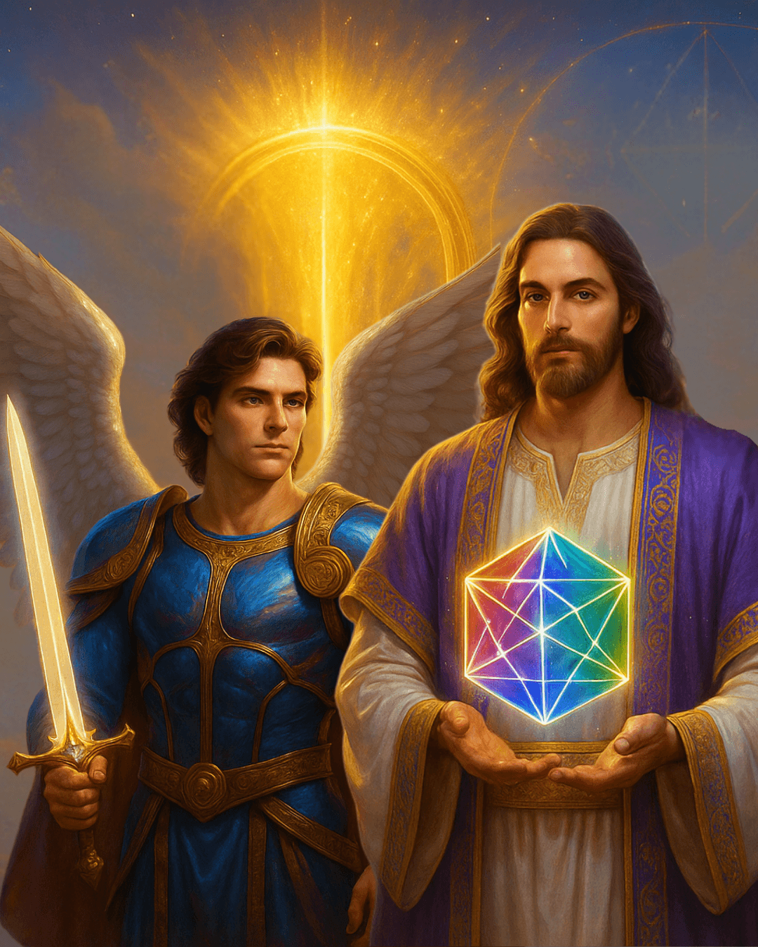 Arcanjo Miguel: espada de luz, corte de laços, proteção e coragem. Arcanjo Metatron: Cubo de Metatron, ordem sagrada, subida de frequência e propósito. A união destas forças ancora o teu campo para a passagem a 2026.